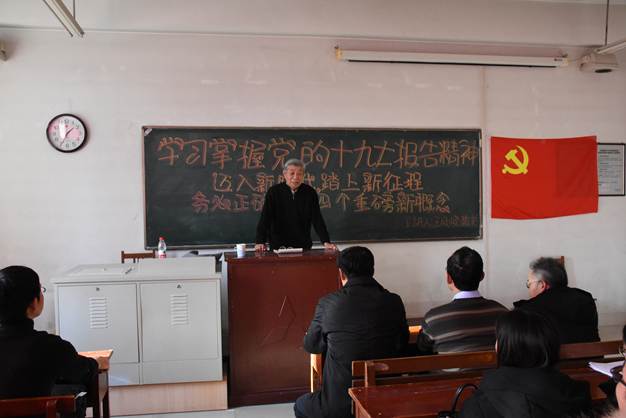 为深入学习和全面掌握党的十九大报告精神,进一步推进“两学一做”学习教育常态化、制度化,12月6日下午,交通工程学院党委邀请学校马克思主义学院退休老党员王凤峣教授在丁1-301教室为师生党员和入党积极分子上了一堂以“学习掌握党的十九大精神报告——迈入新时代,踏上新征程”为主题的专题党课。交通工程学院党委书记窦广会、院长孙红、师生党员以及入党积极分子90余人参加学习,聆听党课。